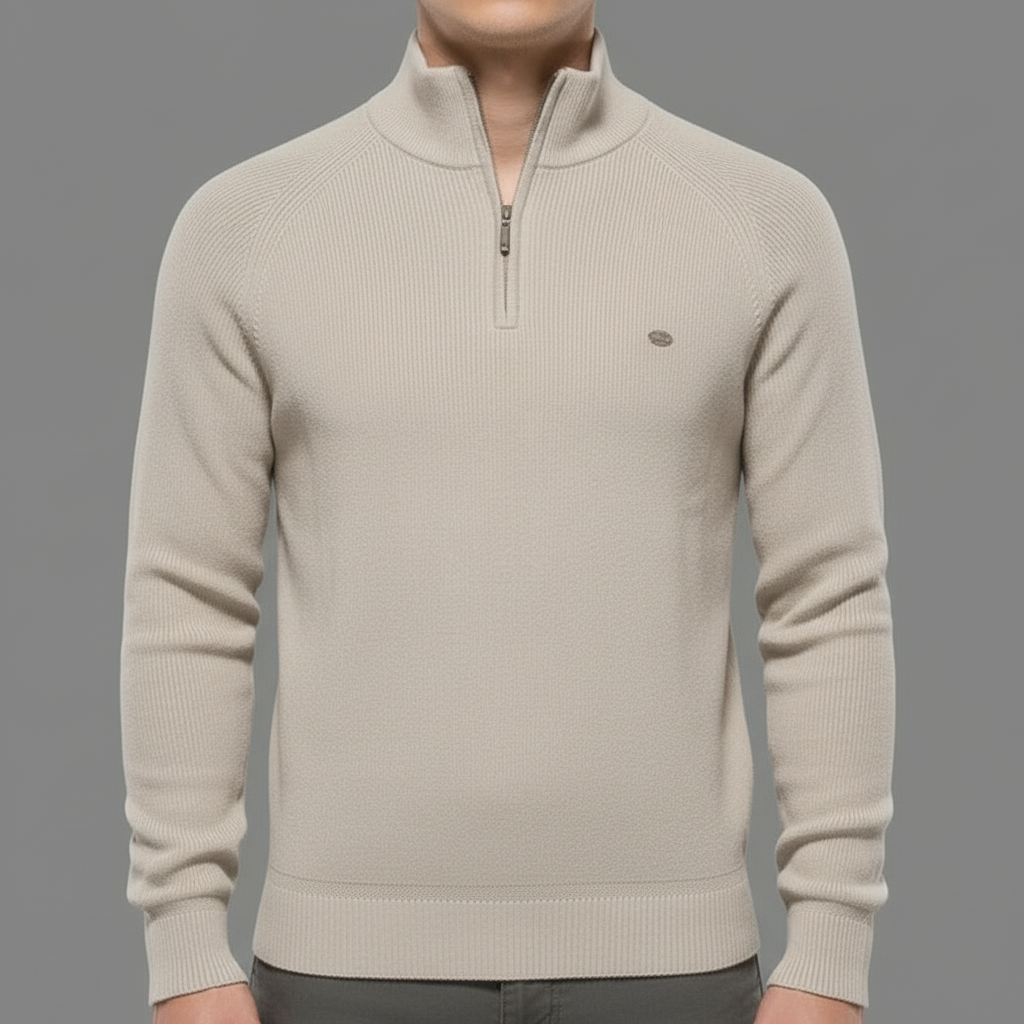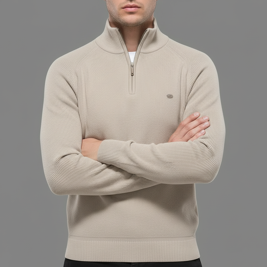 Discover the perfect blend of style and comfort with our men's quarter zip sweater. Crafted from high-quality cotton, this knitted pullover is designed for both casual outings and relaxing evenings at home. Its relaxed fit and timeless design make it an essential addition to any wardrobe, ensuring you stay comfortable and fashionable.